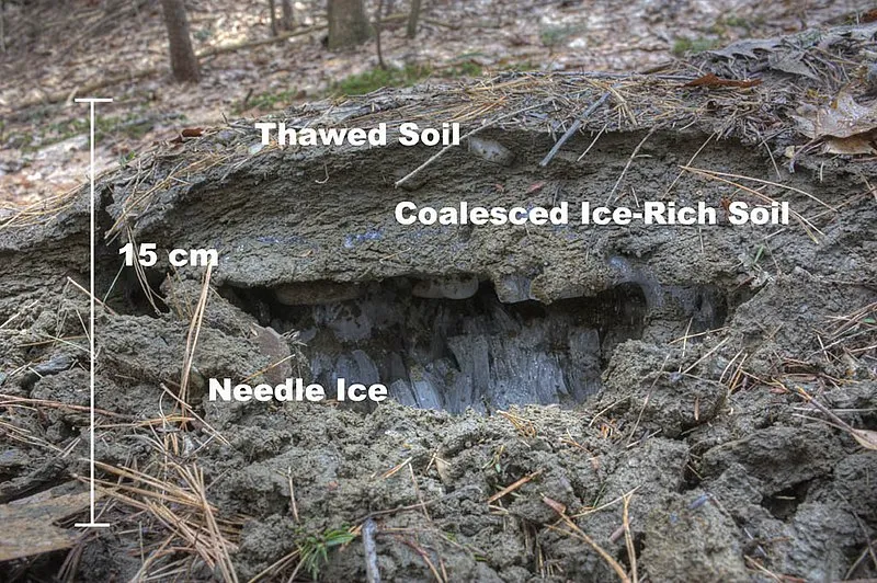 Frost heaving is the upward movement of soil or rock caused by the freezing and expansion of water in the ground. This process is significant in cold climates and can cause damage to roads, buildings, and other structures. Understanding frost heaving is important in geotechnical engineering, soil mechanics, and the study of periglacial environments.